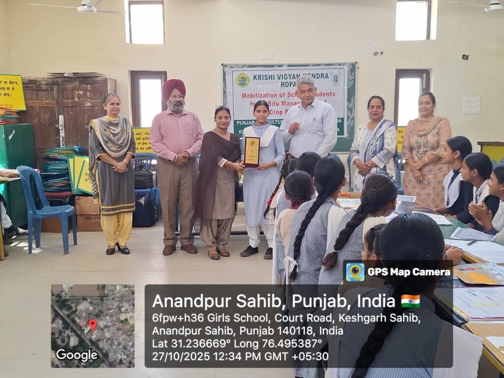 Rupnagar, October 28: PAU-Krishi Vigyan Kendra Ropar organized an awareness camp on the importance of crop residue management for school