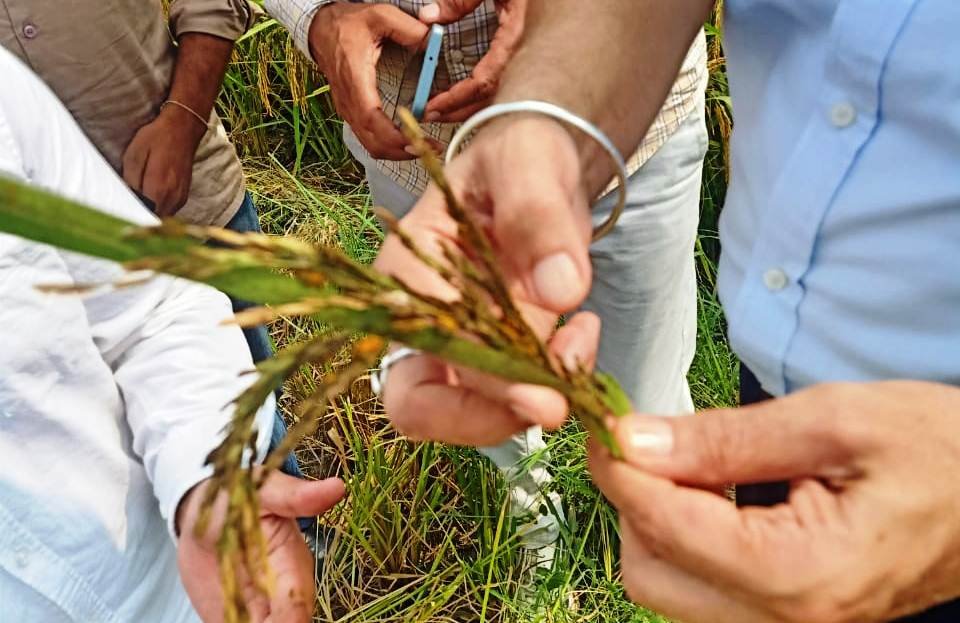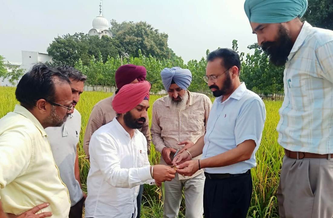 Sri Chamkaur Sahib, October 1: SDM Sri Chamkaur Sahib Amrik Singh Sidhu, PCS, visited the fields affected by turmeric disease along with Tehsildar, Sri Chamkaur Sahib and Agricultural Development Officer, Sri Chamkaur Sahib.